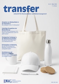 „Lead-Medium“ der DWG für den Austausch zwischen Wissenschaft und Praxis ist die Zeitschrift „transfer – Fachzeitschrift für Kommunikation und Markenmanagement”.